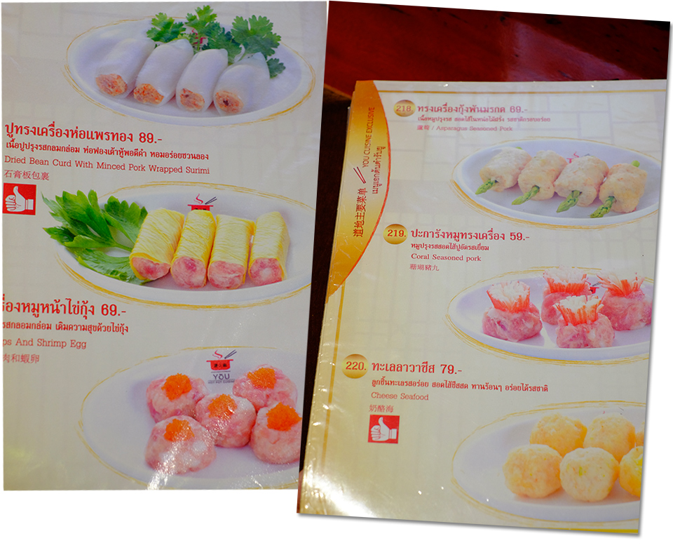 Apart from Guan Ein tea, there are Chrysanthemum tea / Red Dragon tea / Oolong tea as an options for the same price. Now let see You Cuisine restaurant's menu. I heard that the menu has the same standard with all branches which has a picture and the price of each dish stated there.