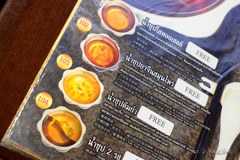 We enter Suki restaurant so we have to try Suki also. Let's choose the soup first. There are Scallop soup, a soup that doesn't stew with a pork bone but use a dry scallop instead which can sweeten the soup. There are 3 type of soups, the rest are Tom Yum soup and Chinese herb soup which Goji are adding in it too but I haven't try this one.
