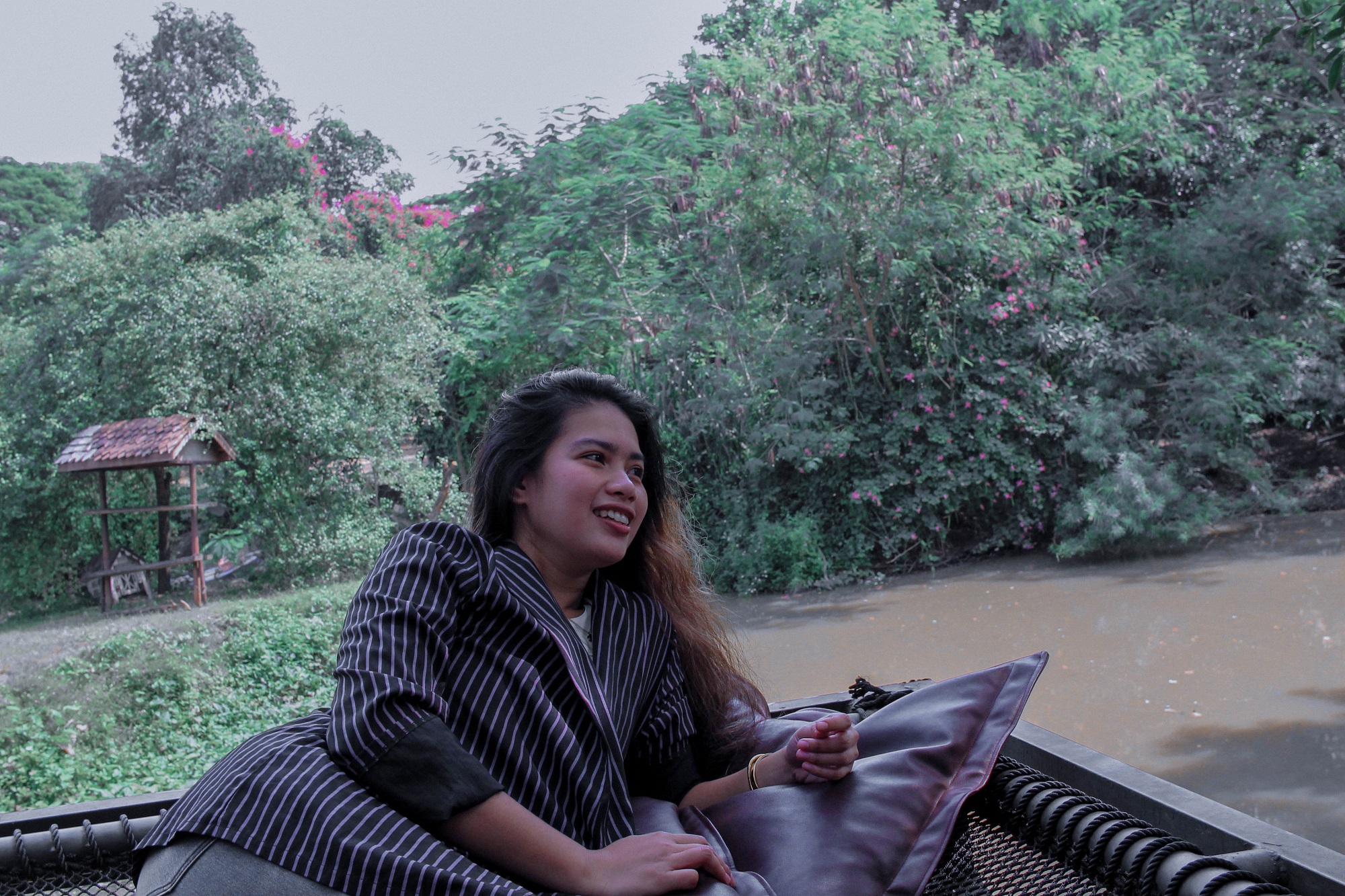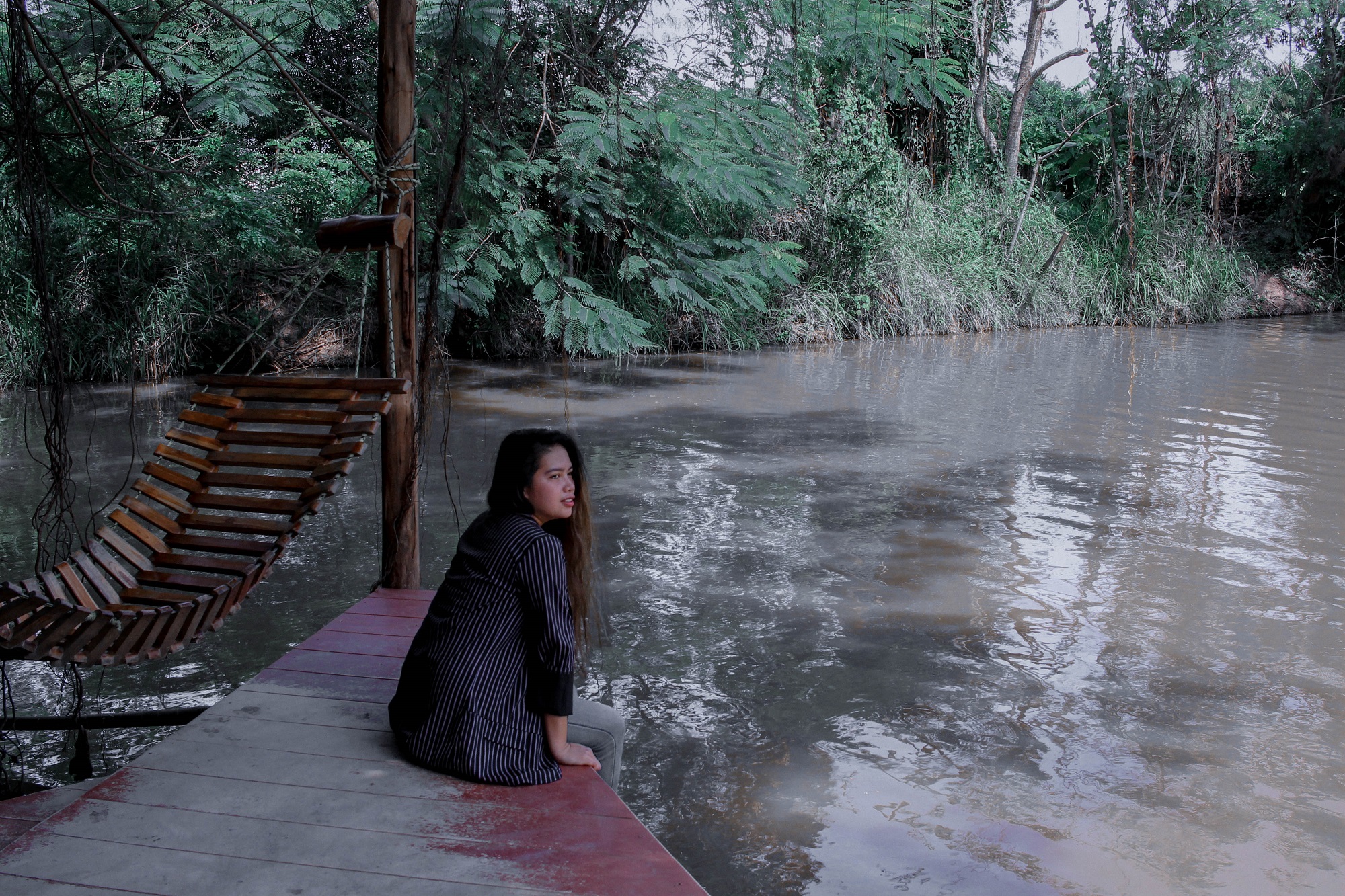 You can find their Facebook Page click HERE or search for สมถวิล คาเฟ่ Somtavin Cafe. The cafe is located at Pong, Bang Lamung District, Chon Buri 20150. We don't have a private vehicle so we choose to use an inDrive app, similar to Grab car but cheaper and you can actually huggle. Unfortunately, during the time we went to Somtavin cafe, it was raining, so most of their photo spots are close. But still, we enjoyed our visit to the cafe during the wet and rainy day. When we arrived at Somtavin cafe it really amazed me how wonderful the place is, it's huge and wide, I felt like I'm not in the city anymore, it feels like I'm in the North of Thailand specifically Chiang Mai. They have at least 3 spots where you can sit and relax, they have a spot where there's a swimming pool in front, but I think the pool is not for swimming. They have a restaurant with a view of the river, they also have this tea area that looks like you are in Bali and many more. We stayed in their restaurant with a river view and it's totally perfect for a coffee because of the weather and the perfect view. Their foods are affordable with big servings. The staffs are accomodating with our needs and very helpful when I lost my umbrella they really made an effort to look for it. There are a lot of photo spots in the area but due to the unfriendly weather, we only managed to take a few photos.