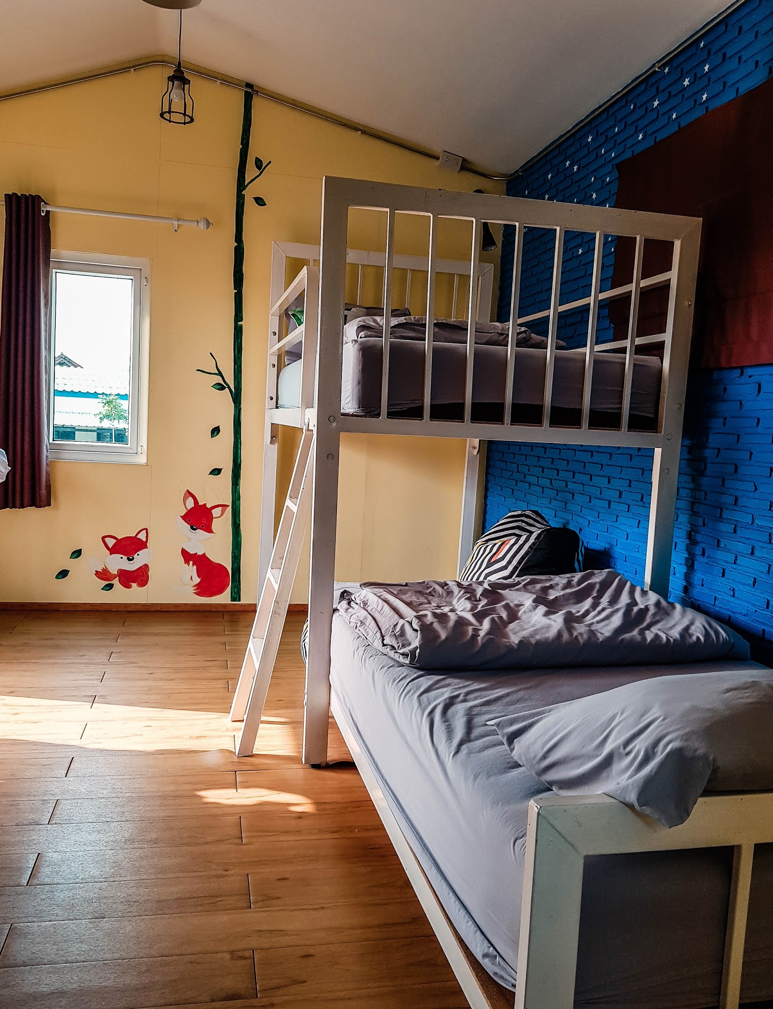Patoey House has different types of rooms from the single bedroom(450 THB), double bedroom (600 THB), twin bedroom (600 THB), 3 single bedrooms (750 THB), and family-sized room(1500 THB). These prices are very reasonable especially for a relaxing property in Chonburi. I just saw a few of the other room types because most of the rooms are already occupied with guests.