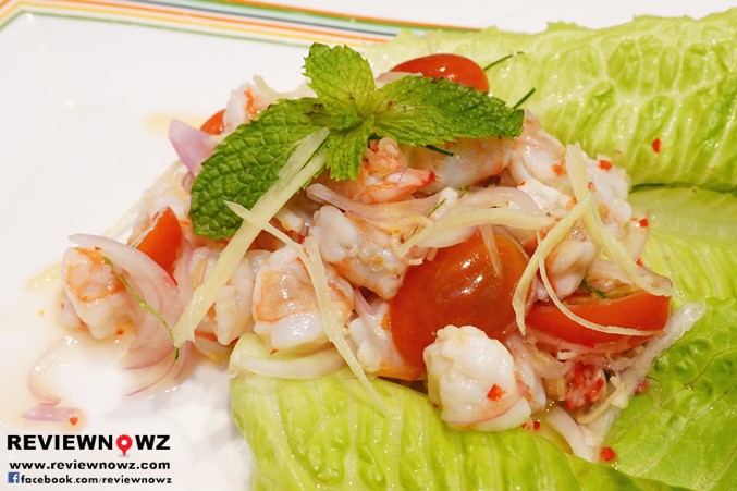'Sa-raeng wa' Bouncy, sweet shrimp tossed with a tangy, salty, and slightly spicy sauce, balanced by fresh vegetables.