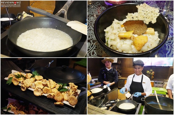 Freshly made truffle risotto with perfectly cooked rice, seasoned to perfection, paired with chewy mushrooms and generous chunks of truffle.