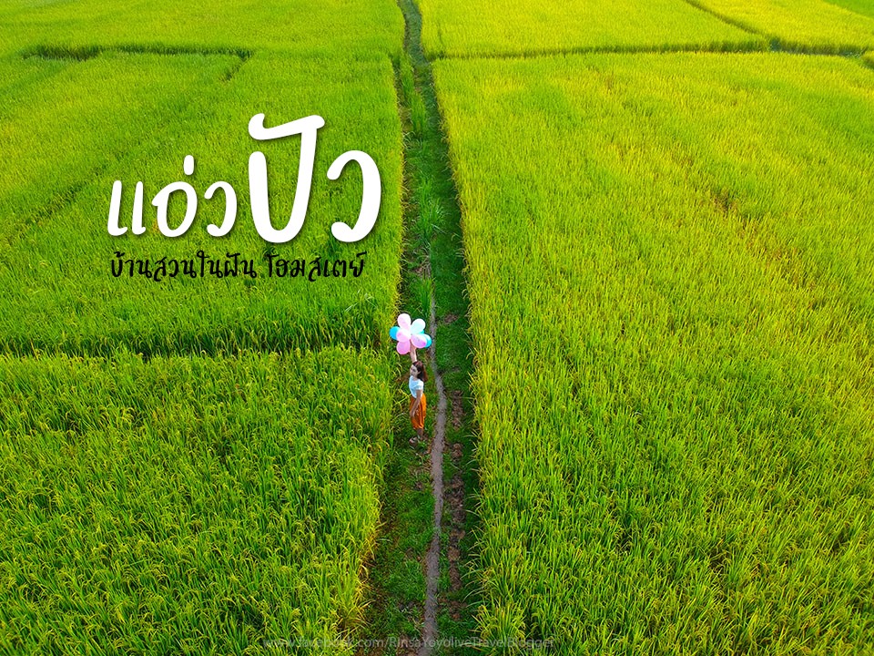 Walking down to the opposite side of the dream garden house, there is a beautiful rice field with rice plants that are waiting to turn yellow and be harvested.