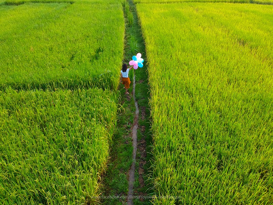 Walking through the rice fields with balloons was a very noisy and dangerous experience.