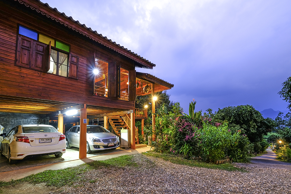 You can drive your car directly to Baan Suan Nai Fun Homestay. There is ample parking space available under the main house. The surrounding area of Baan Suan Nai Fun is a true garden, with flowers, fruits, and vegetables planted throughout.