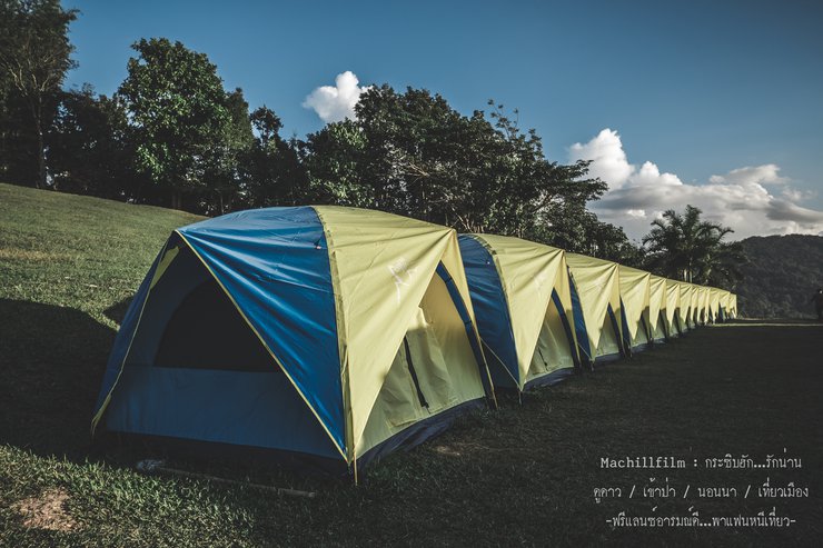 In a flash, the tent was set up like a professional. It was a large tent that could accommodate four people, but we only had two people per tent. We could stretch out our legs and even do somersaults. The equipment was complete, the tent was new, and there was no musty smell. The bedding was also complete. The rental price was only 350 baht per day, which was very good value (only a few tens of baht more expensive than the national park). Plus, we could choose our own camping spot. This is suitable for people who rent large cars like us, because it was very bulky when we brought it. It was tied with ropes and a roof rack (the tent rental number is below).