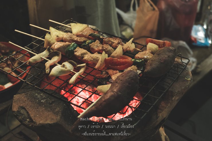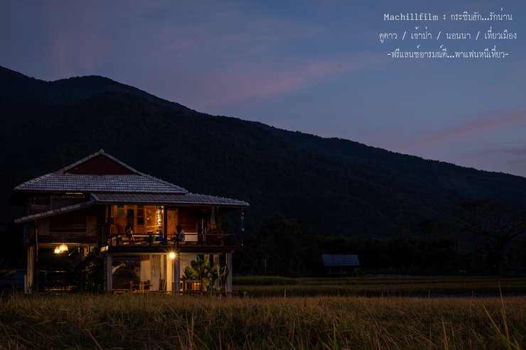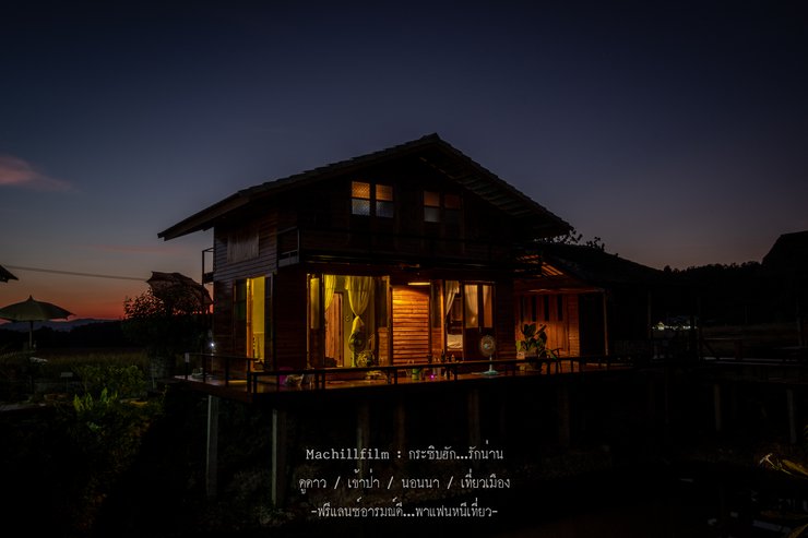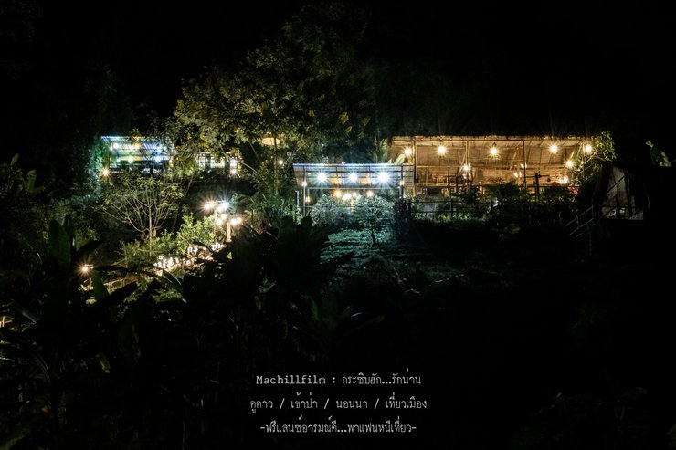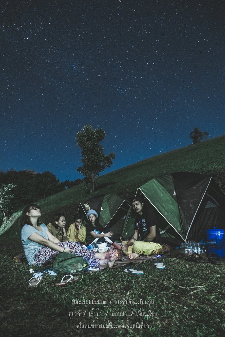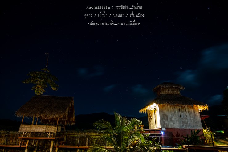Eating rice with a side of stars is the ultimate pleasure. I understand why it's called Doi Pha Hom Pok, because it's so dark that you can see all the stars clearly, like a panorama. Everywhere you look, there are stars. We ate our meal happily, then sat and watched the stars. The air was cool enough to be comfortable. It was a 10 out of 10 for pleasure and relaxation.