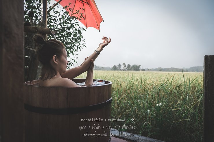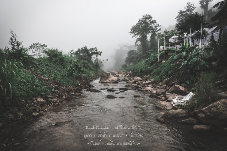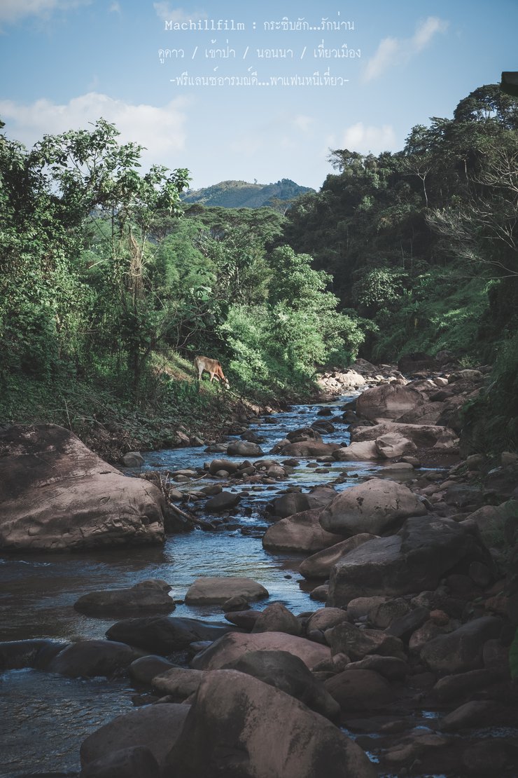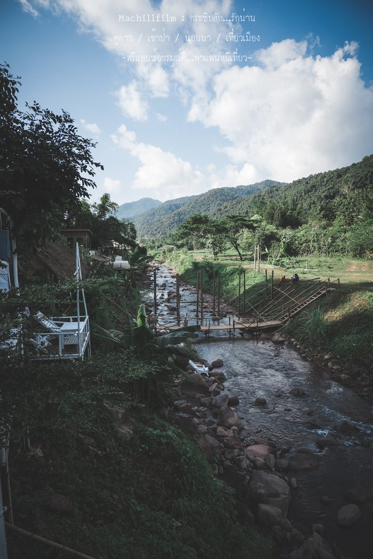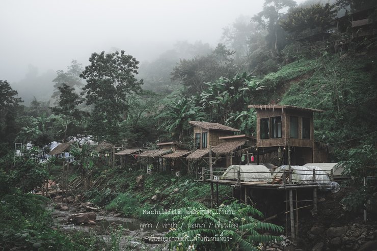 Behind the village, there is a crystal-clear stream where fish swim freely. Visitors can feed the fish for 10 baht per bag.