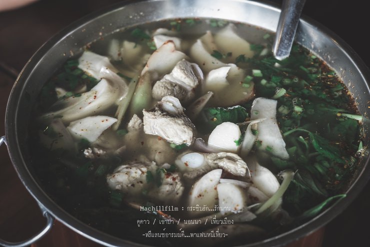No need to season, because there are no condiments. Just kidding! It's already seasoned, so taste it before you add anything. For me, it's already delicious. No need to season… Soft noodles with a spicy tom yum soup, served with tender, boiled dragon backbone pork bones. It's perfect, finger-licking good.