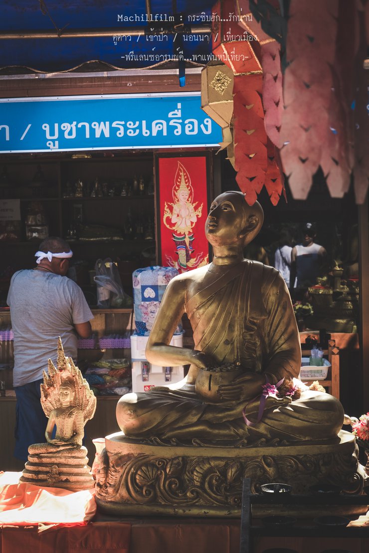 After paying respects and making offerings at the temple, visitors are greeted by a vibrant display of orange paper lanterns, a hallmark of Lanna architecture, hanging in every corner, adorning the temple grounds.