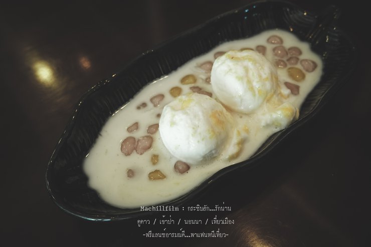 The appearance is like this… Coconut ice cream with boiled eggs and lotus seeds. It is as delicious as its reputation, not too sweet, and has a perfect flavor.