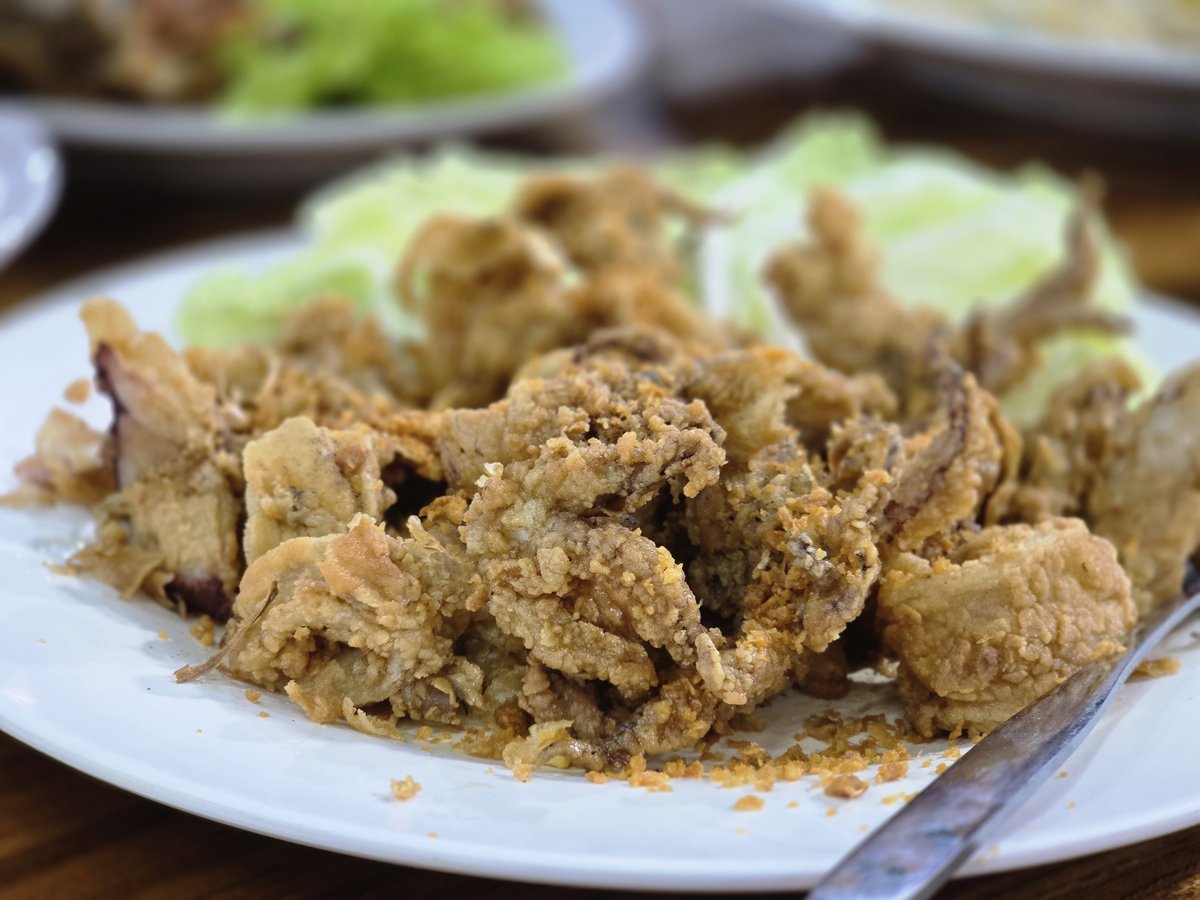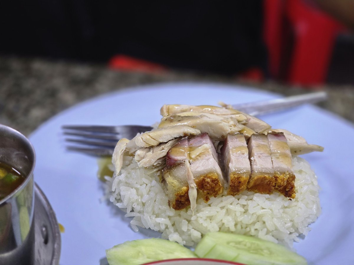 He ordered rice top with crispy pork and boiled chicken and it was so good.