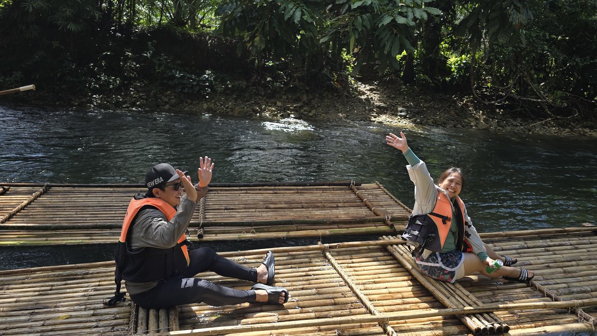 We were lucky today because the water level is good for bamboo rafting. I like this kind of activity