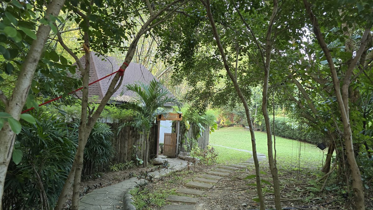 Smell of the flower they growth around area make us feel fresh. The End of the walkway is the cafe for breakfast. We both was the first guests arrive there this morning